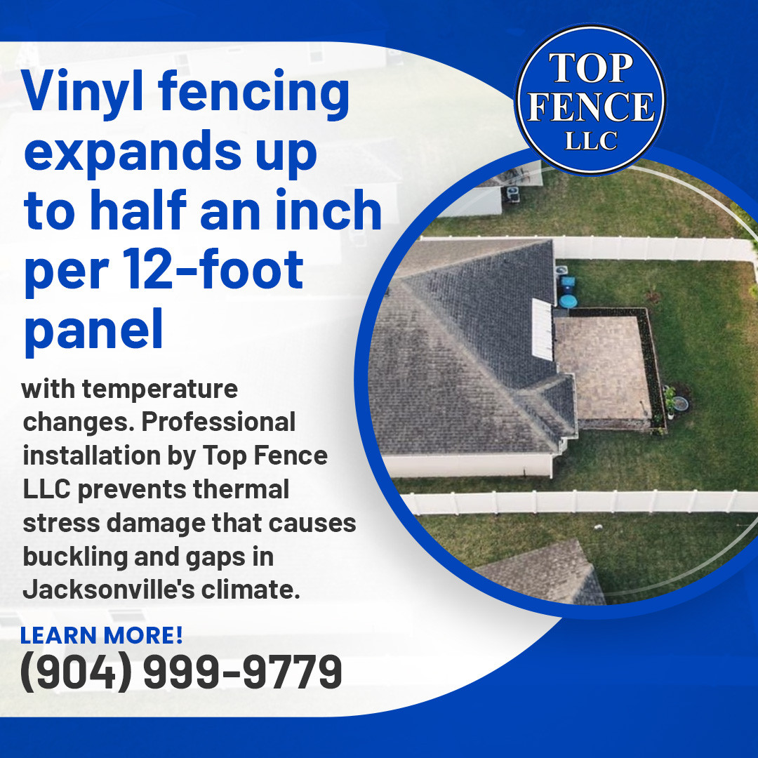 Jacksonville, FL - Top Fence LLC, a leading residential fence company in Northeast Florida, today shared guidance on vinyl fence expansion and contraction for Jacksonville-area homeowners. The information helps property owners understand thermal movement in vinyl fencing and highlights the role of professional installation techniques in maintaining fence performance and durability under Florida’s temperature fluctuations.